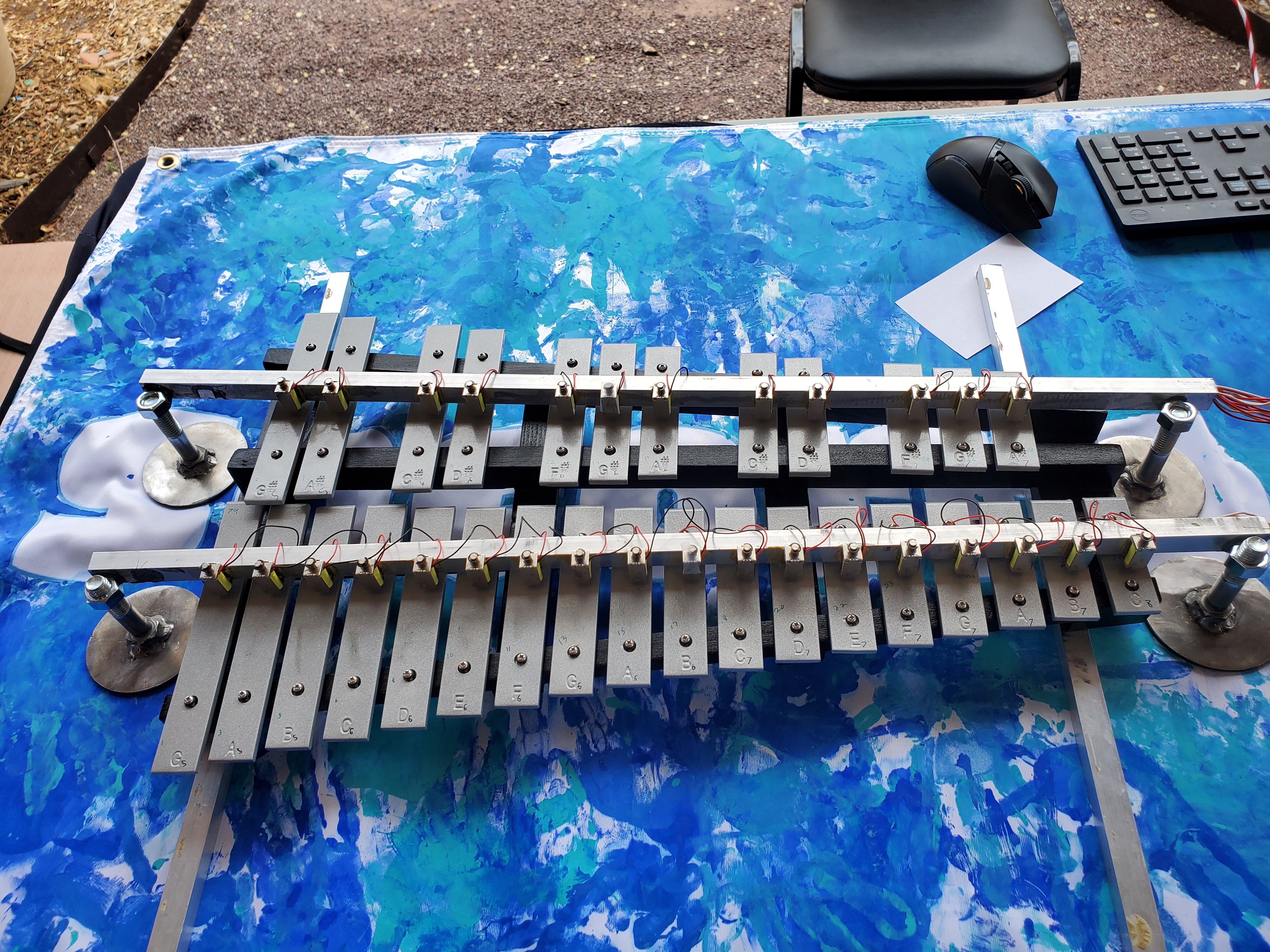 With a Raspberry Pi, the Xylophone is able play over 60 songs by striking the keys with it's electronically controlled solenoids.